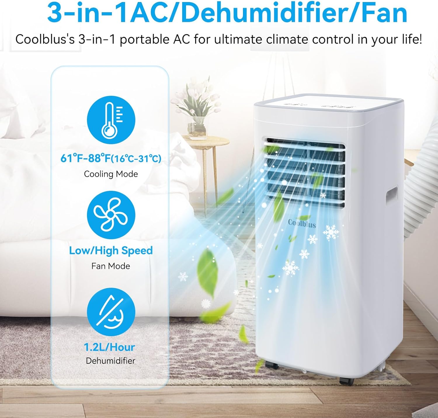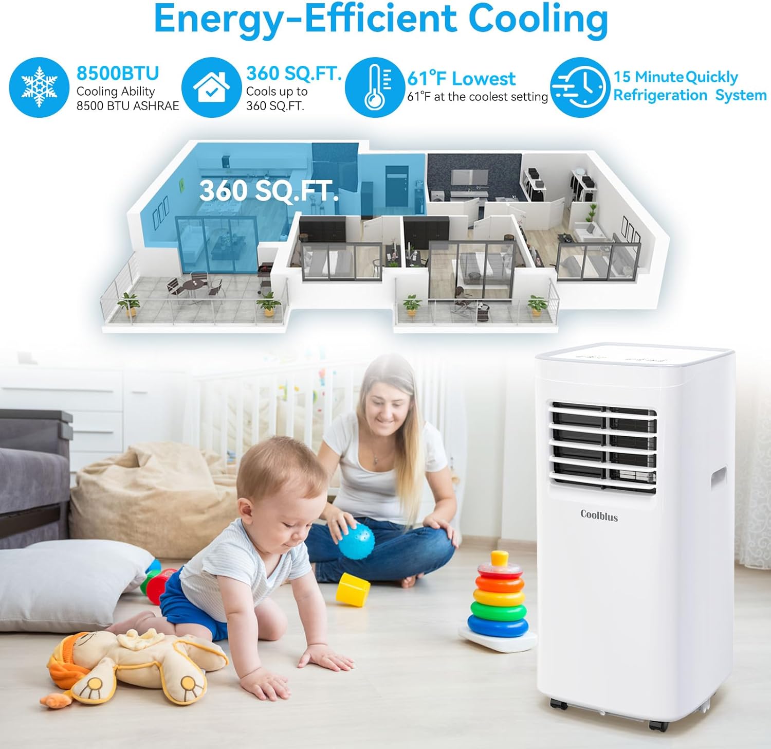 8500 BTU Portable Air Conditioners Cool Up to 360 Sq.Ft,3 IN 1 portable ac unit with Remote Control/LED Display/24Hrs Timer/Window Installation Kit & Screwdriver,White
