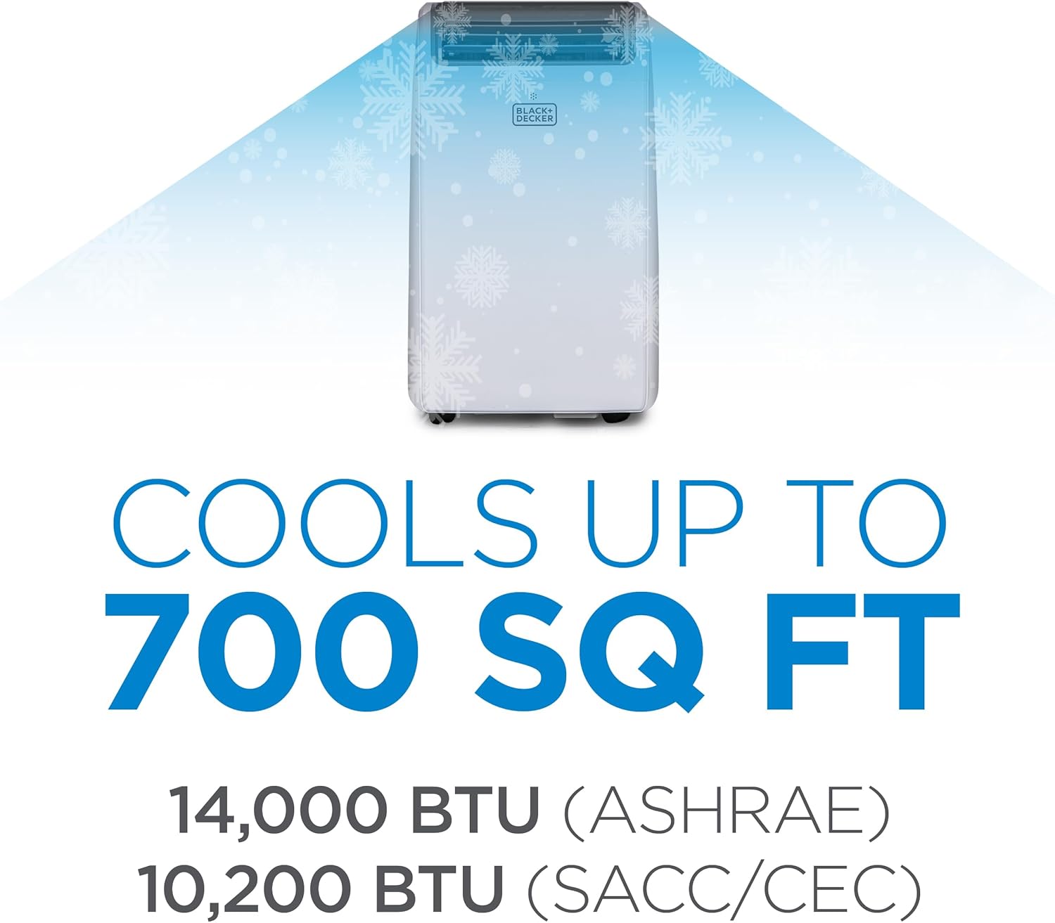 BLACK+DECKER Smart Portable Air Conditioner, 14,000 BTU (10,200 BTU SACC) for Rooms up to 700 Sq. Ft., Smart Portable AC with Follow Me Remote and Window Kit, BPACT14WT, White