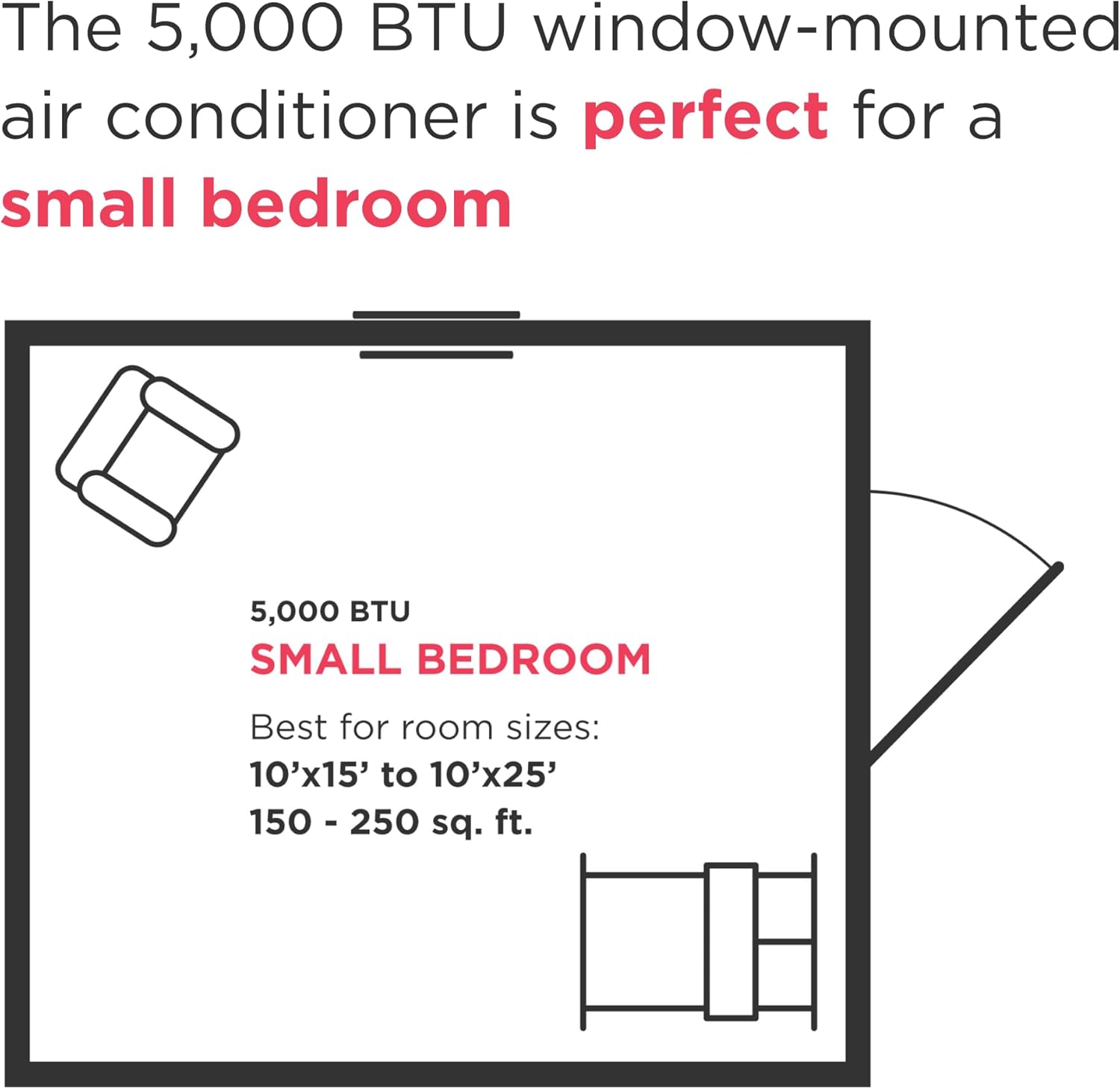Frigidaire 5,000 BTU Window-Mounted Air Conditioner, Cools Up to 250 Sq. Ft., Quiet Operation, Effortless Temperature Control, 2 Fan Speeds, Auto Restart, White