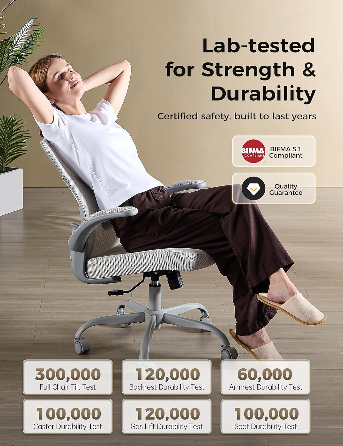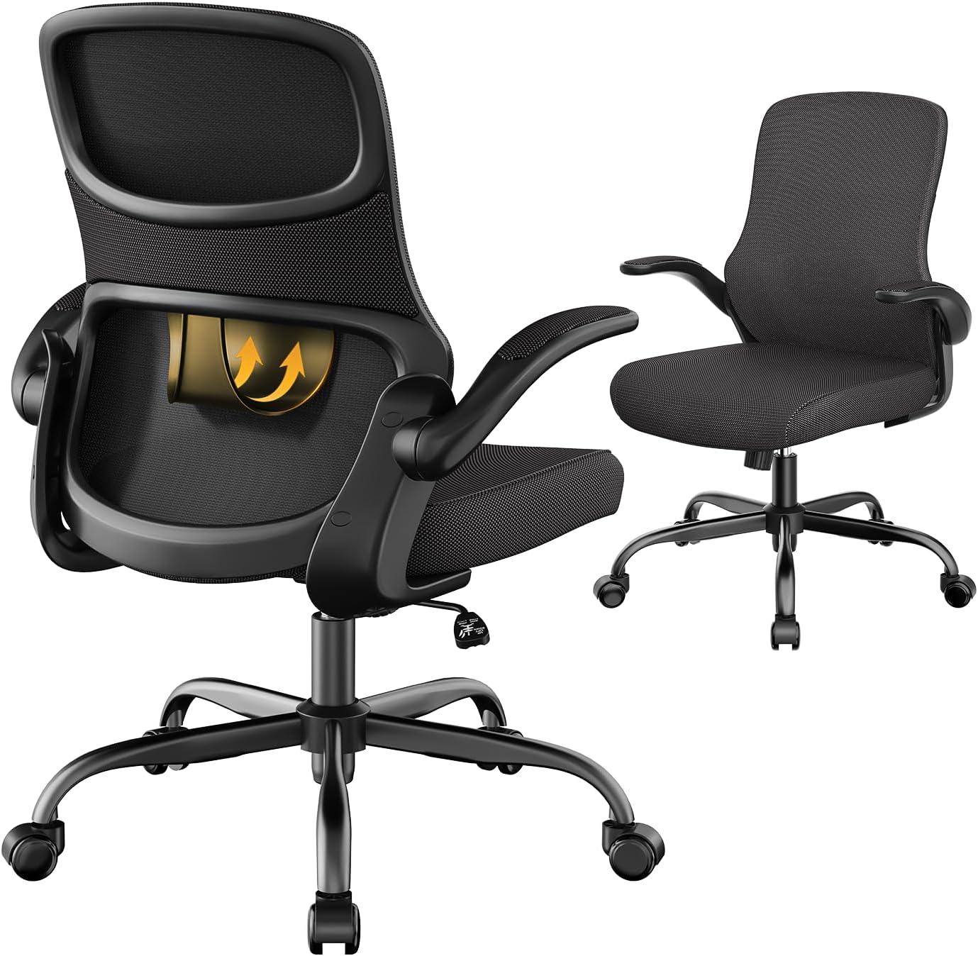 Office Chair, Mesh Ergonomic Desk Chairs, Lumbar Support, Adjustable Height, Flip-up Armrests, Swivel Function and Smooth-Rolling Wheels for Home, Office and Gaming (Gray)