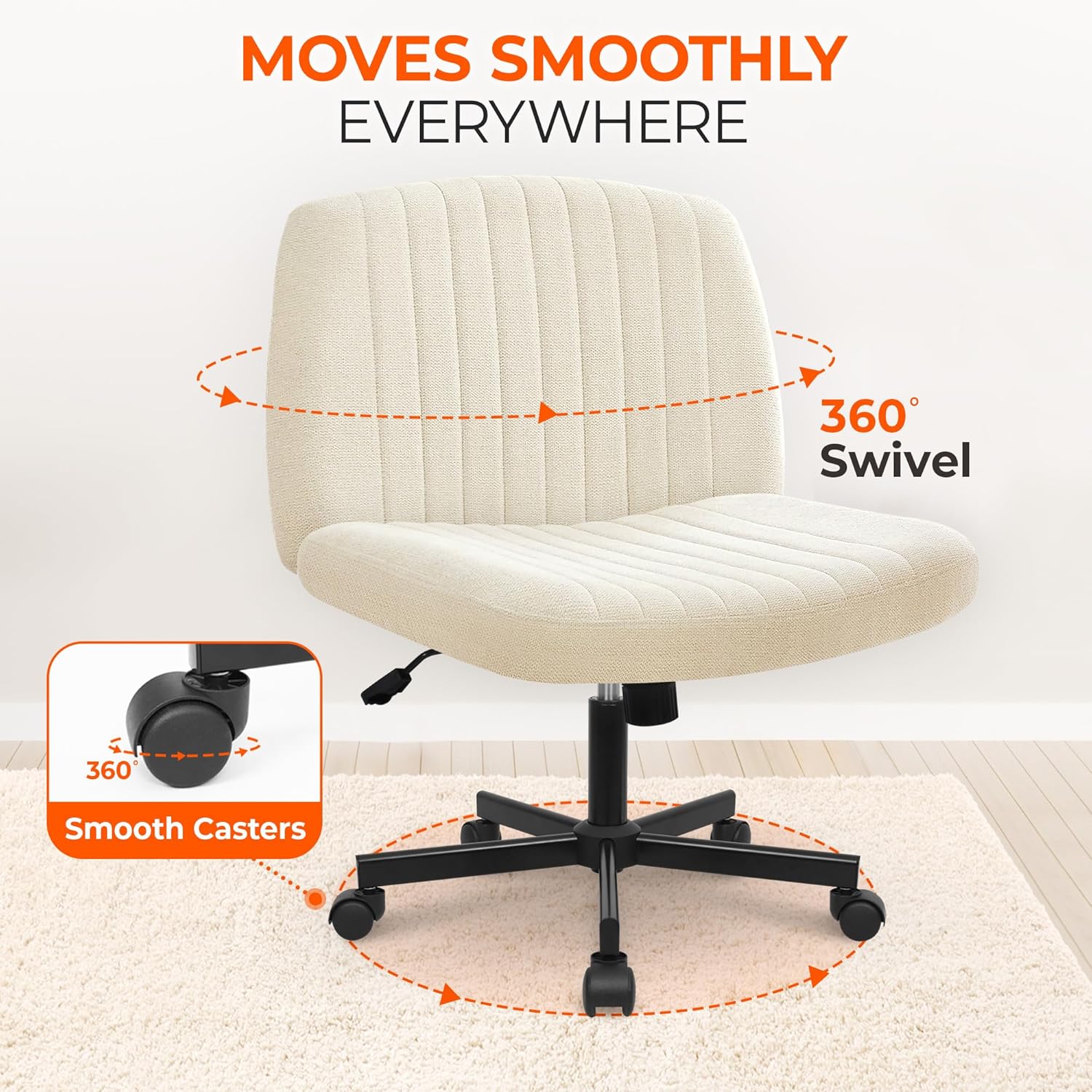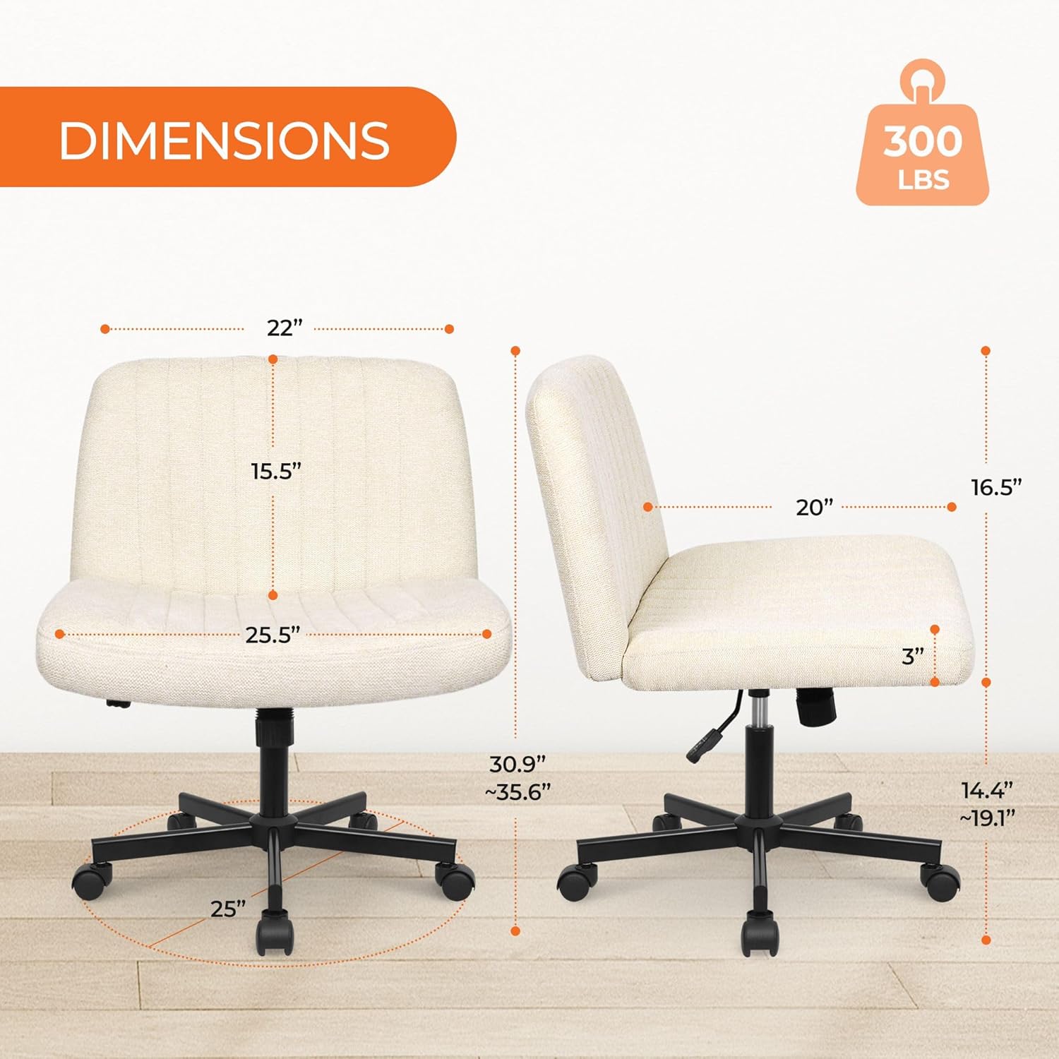 Orange Factory Criss Cross Chair Wheels Wide Cross Legged Office Desk Vanity Chair Comfy Fabric Armless Adjustable Swivel for Home Computer Task (Beige)